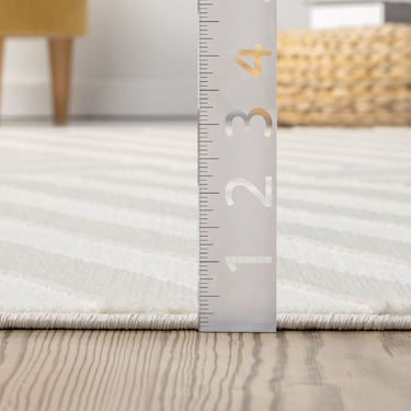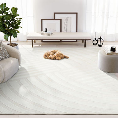 Elevate your home with the subtle sophistication of this cream rug, featuring a tone-on-tone lined pattern that adds depth and texture without overwhelming your space. The minimalist design offers a modern touch, making it a versatile piece for any room, from living areas to bedrooms. Its soft, neutral hue blends seamlessly with various decor styles, enhancing your space with understated elegance. Crafted from durable, pet- and kid-friendly materials, this rug is perfect for busy households, offering both style and practicality. Easy to maintain and designed for everyday use, it’s a timeless addition to any home.