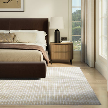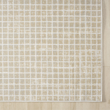 This area rug showcases a subtle checkerboard grid in warm beige tones for a modern, minimalist look. Woven in a durable, fade-resistant pile, this grid rug holds up in high-traffic areas and adds understated texture. Perfect for kitchens, hallways or bedrooms, it brings versatile style and easy upkeep.