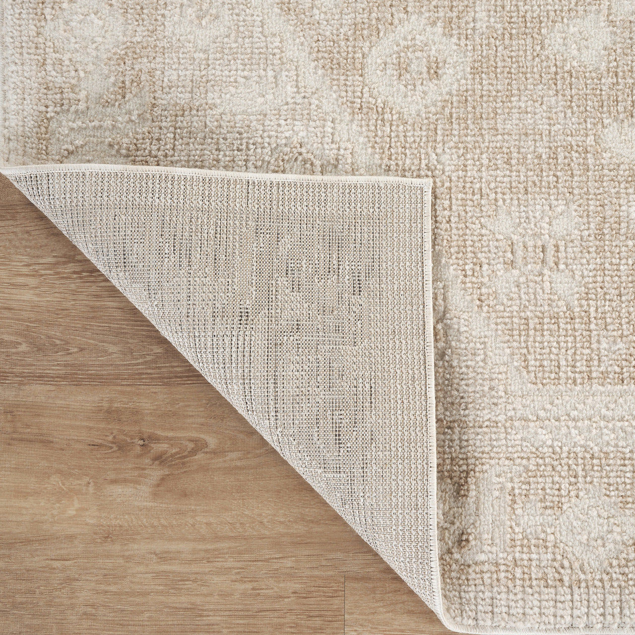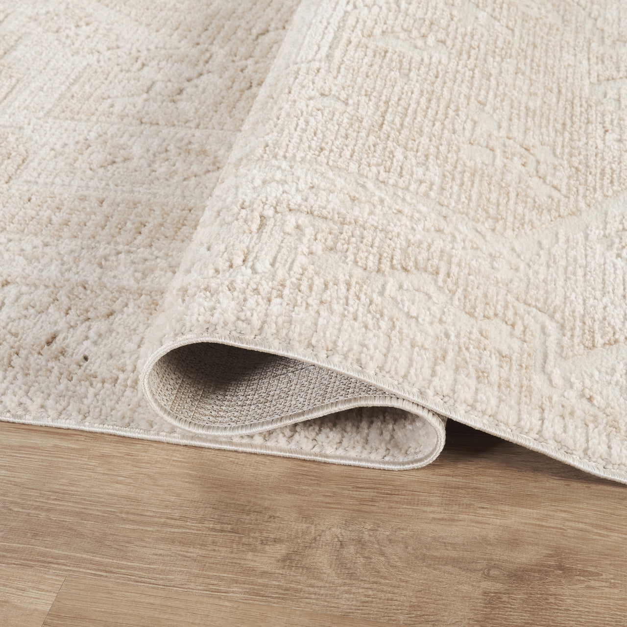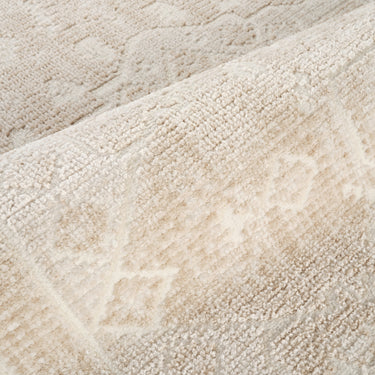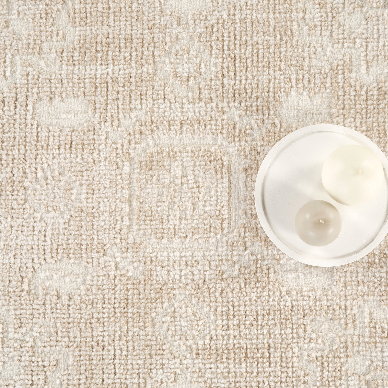 Understated yet elegant, this area rug features a gently faded medallion pattern in soft beige and ivory tones. The tonal design adds subtle texture and depth, creating a versatile foundation that complements both classic and contemporary spaces. Ideal for living rooms, bedrooms, or dining areas, it brings a touch of timeless sophistication with a modern, minimalist edge.