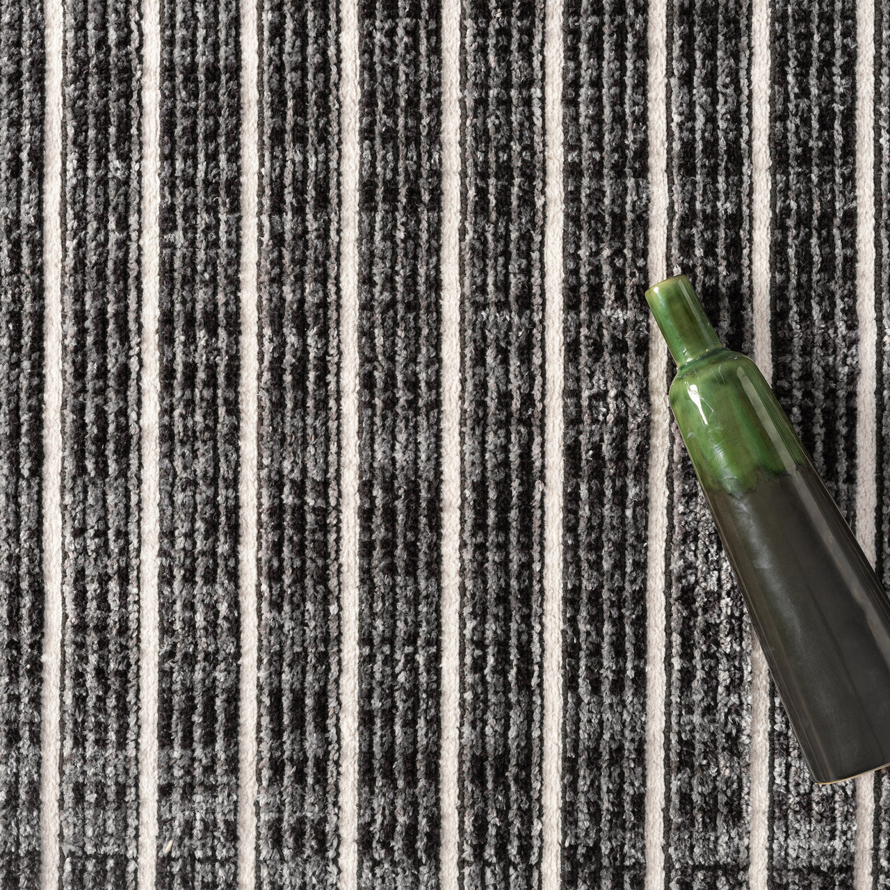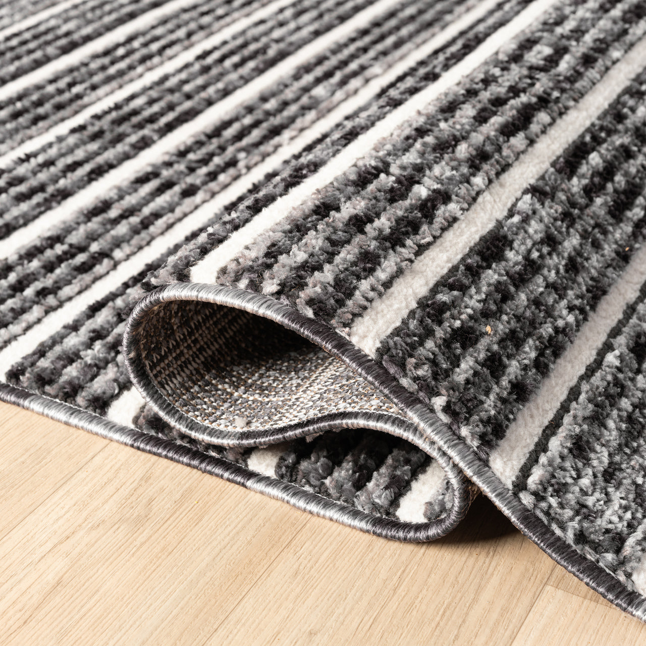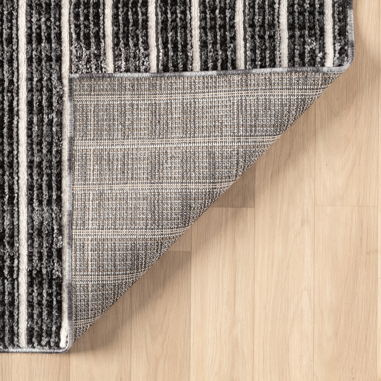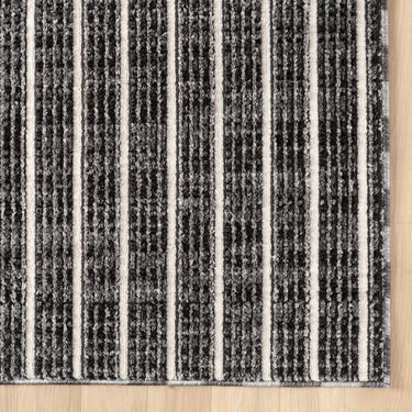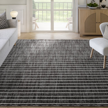 Sleek and structured, this area rug features a clean linear stripe design in black and grey tones. The horizontal lines create a sense of movement and balance, offering a refined, minimalist look ideal for modern and transitional interiors. Whether placed in a living room, hallway, or office, it brings subtle texture and contemporary style to any space.