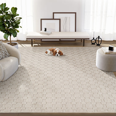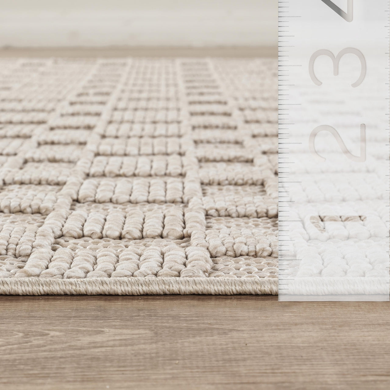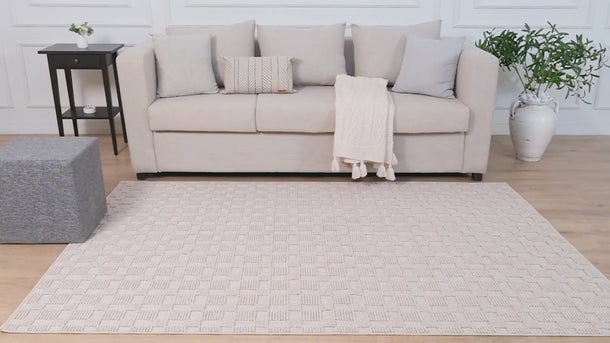 Modern design meets everyday comfort in this rug from the Luca Collection. Featuring a soft looped texture and a structured grid pattern in beige and cream, it delivers a balanced blend of style and coziness. The cushiony feel underfoot makes it perfect for adding warmth to living rooms, bedrooms, or family spaces, while its durable construction ensures long-lasting use in both relaxed and refined interiors.
