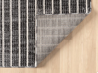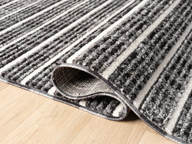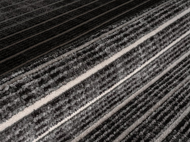 Sleek and structured, this area rug features a clean linear stripe design in black and grey tones. The horizontal lines create a sense of movement and balance, offering a refined, minimalist look ideal for modern and transitional interiors. Whether placed in a living room, hallway, or office, it brings subtle texture and contemporary style to any space.