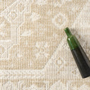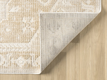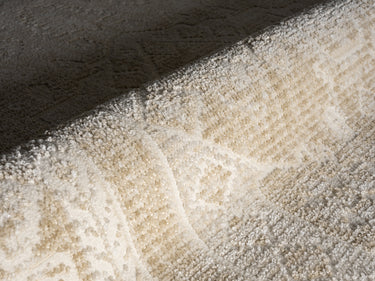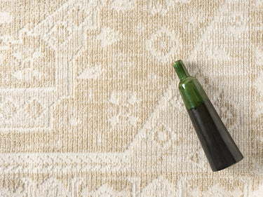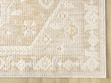 Understated yet elegant, this area rug features a gently faded medallion pattern in soft beige and ivory tones. The tonal design adds subtle texture and depth, creating a versatile foundation that complements both classic and contemporary spaces. Ideal for living rooms, bedrooms, or dining areas, it brings a touch of timeless sophistication with a modern, minimalist edge.