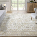 Dress your space with this area rug featuring an intricate ivory medallion surrounded by a delicate botanical border. Woven in durable, fade-resistant fibers, this medallion rug withstands wear and fading. Ideal for formal living rooms or dining areas, it delivers timeless elegance and simple maintenance.