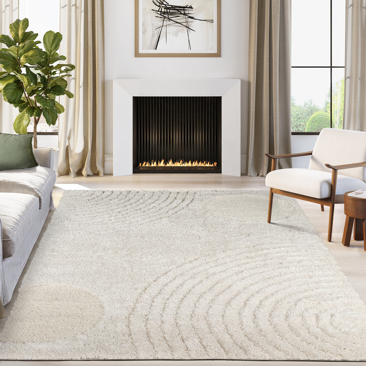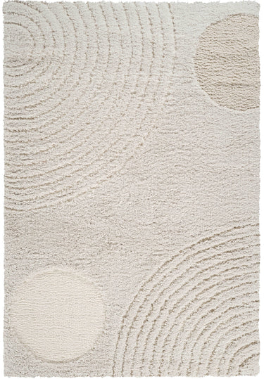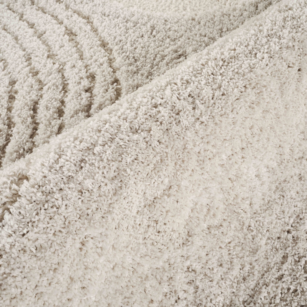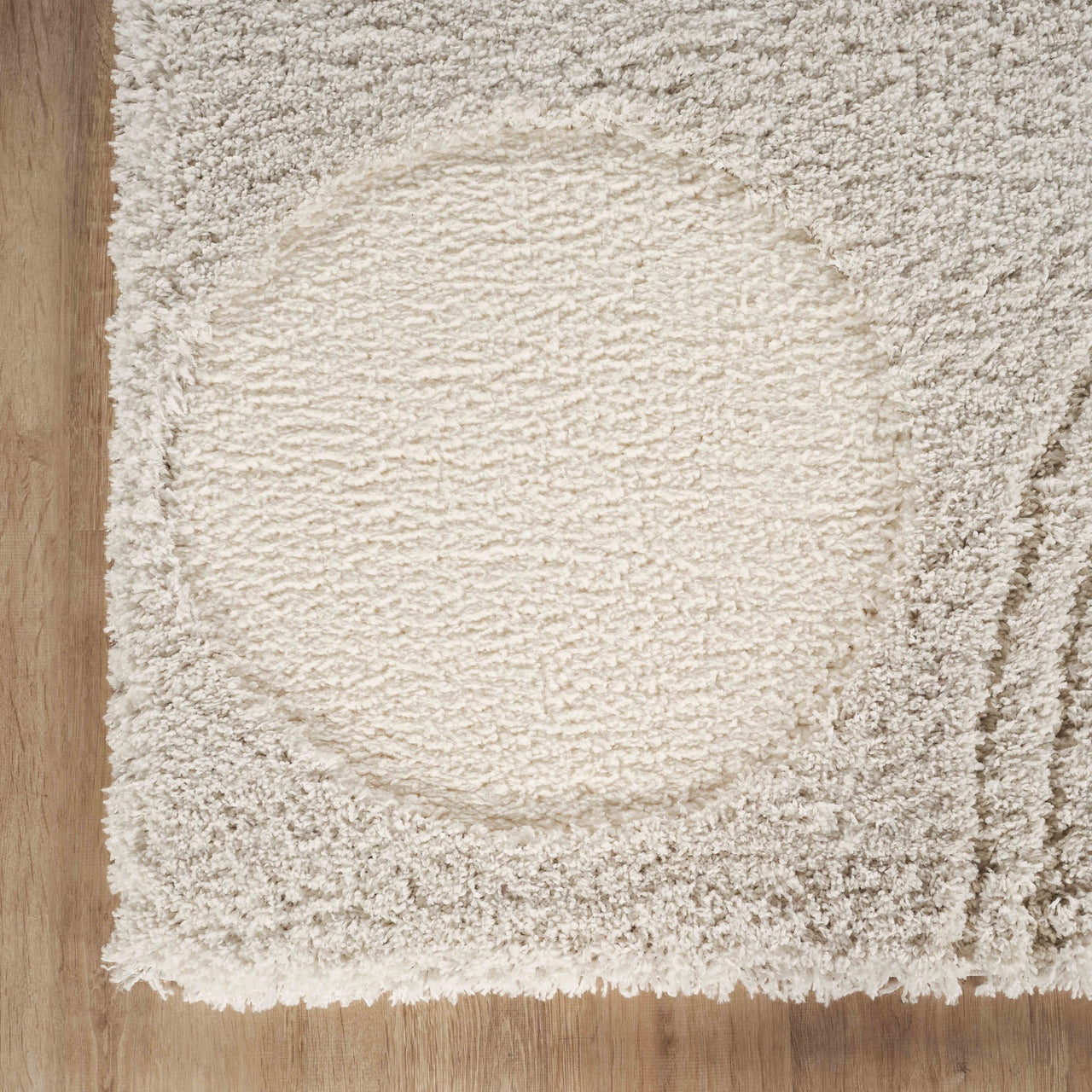 Soft, sculpted texture and a modern geometric design define this cozy rug from the Glenn Collection. Featuring concentric circle motifs in a calming neutral palette, its plush shag pile offers luxurious comfort underfoot while adding subtle visual interest to your space. Perfect for bedrooms, living rooms, or reading corners, this durable and easy-to-maintain rug combines warmth, softness, and contemporary style for everyday living.