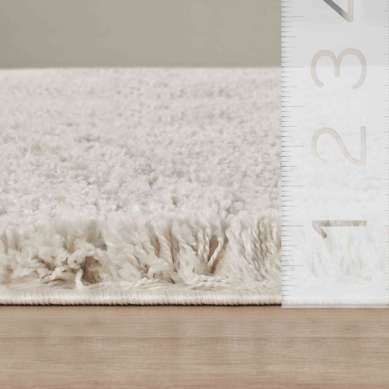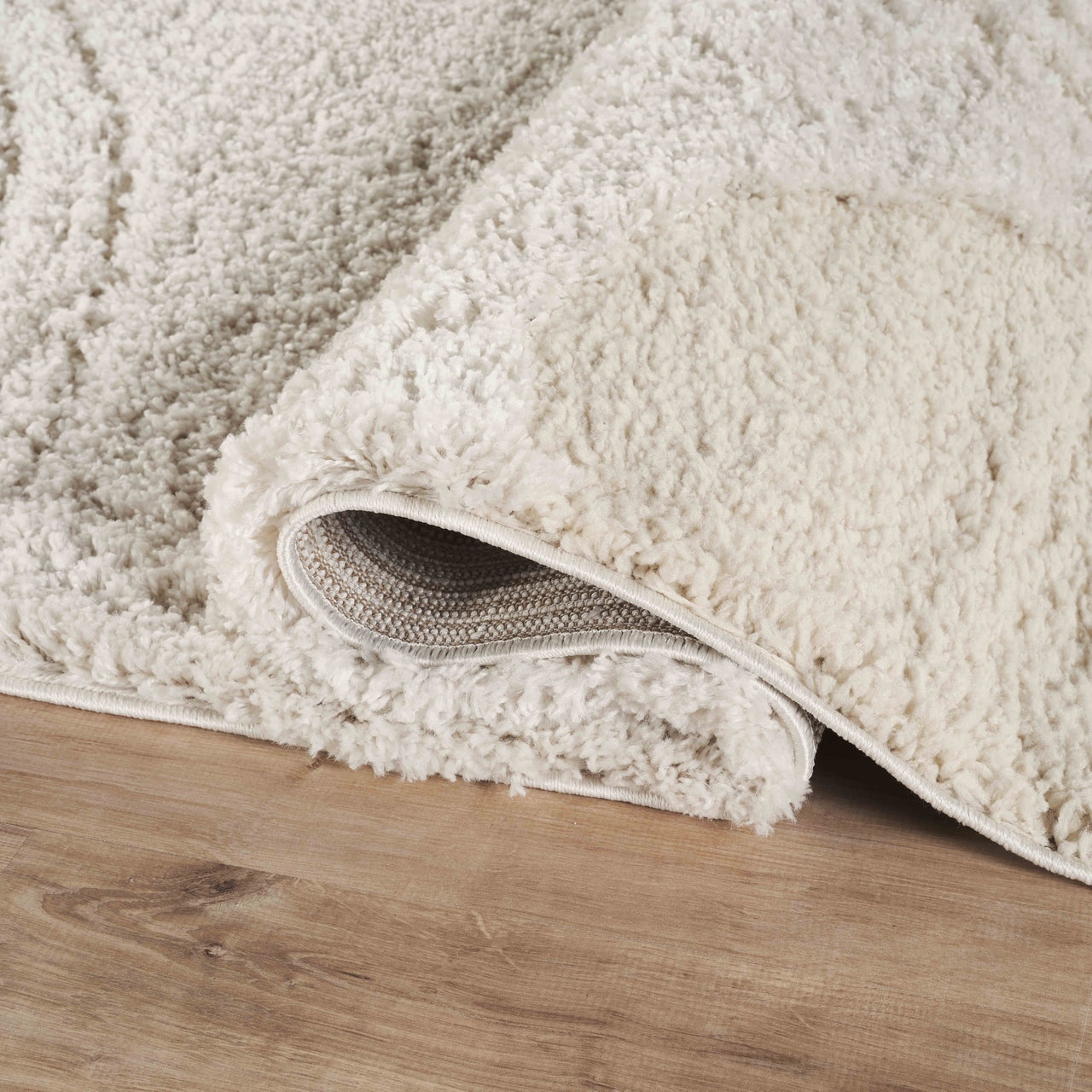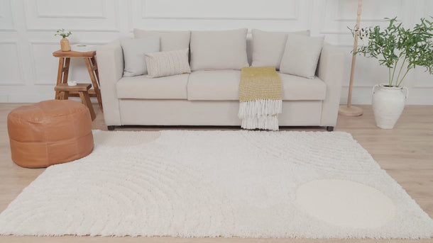 Soft, sculpted texture and a modern geometric design define this cozy rug from the Glenn Collection. Featuring concentric circle motifs in a calming neutral palette, its plush shag pile offers luxurious comfort underfoot while adding subtle visual interest to your space. Perfect for bedrooms, living rooms, or reading corners, this durable and easy-to-maintain rug combines warmth, softness, and contemporary style for everyday living.