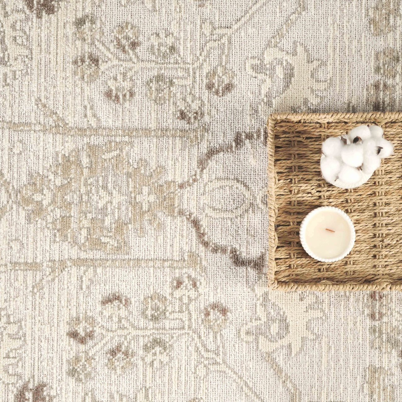 Elegant botanical motifs and a soft neutral palette define this timeless rug from the Nora Collection. The intricate design and subtly distressed details create a sophisticated, vintage-inspired look that blends seamlessly with both classic and modern interiors. Durable, easy to maintain, and crafted for everyday living, it’s an ideal choice for living rooms, bedrooms, or dining spaces.