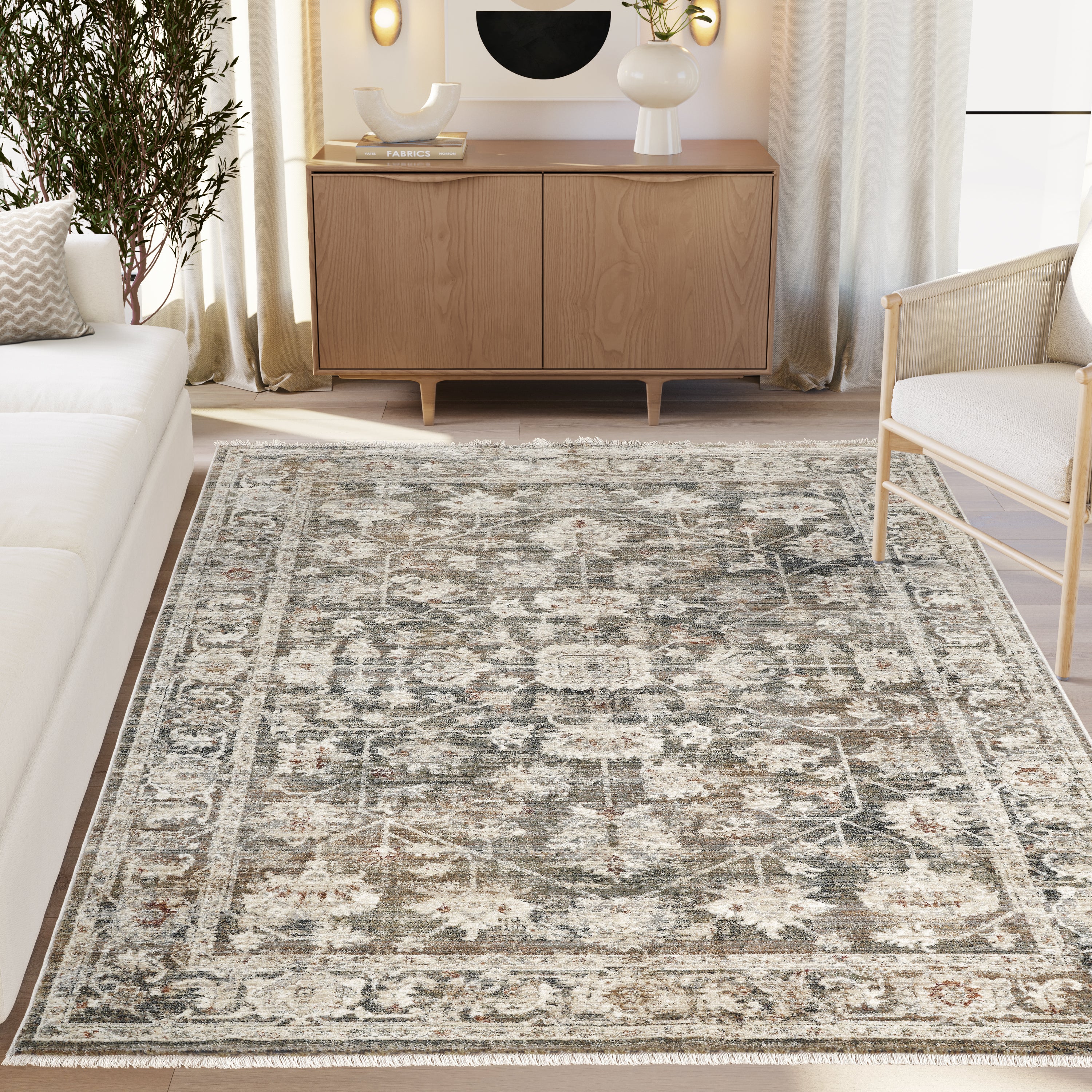 Grounded in a rich mix of muted browns with layered navy accents, this Alara Collection rug brings depth and character through a softly distressed, vintage-inspired design. The darker palette anchors a space while remaining versatile and easy to style. Fully washable and made for everyday living, it’s a practical, low-maintenance choice for high-traffic rooms and busy homes that need durability without sacrificing style.