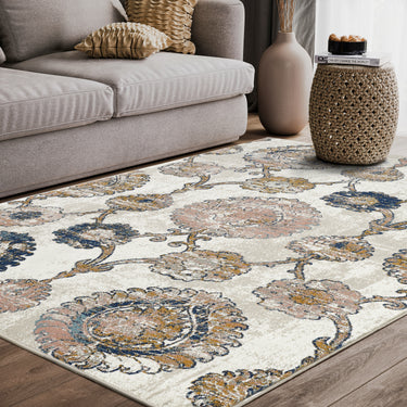 This trendy rug blends both modern and traditional styles with a tasteful combination of Turkish medallions and bohemian distressing. Cool, contemporary shades of coral and navy blue make this area rug subtle enough for any interior design style. This will be the perfect addition to any room in your home, and the soft, easy-care texture will continue to make an impact in your design for years to come. Bring the luxury of centuries past into any room in your home with this intricate medallion area rug. It’s a heirloom favorite you’ll cherish for generations.