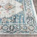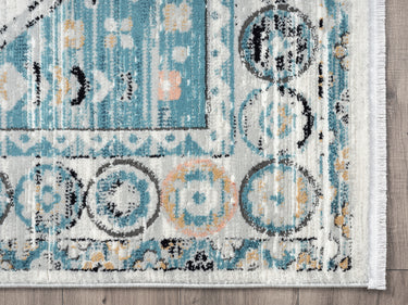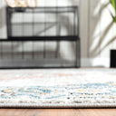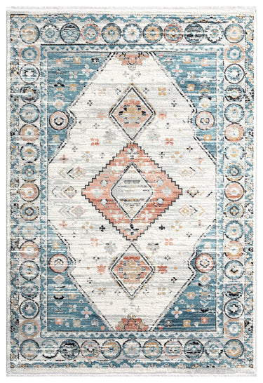 This contemporary area rug perfectly blends the old with the new. Look like an expert in antique design with this oriental-inspired pattern and modern color tone. The ivory background ensures this area rug blends seamlessly into any existing home style. Yet, the blue border and orange diamond pattern in the center brings life and drama to this work of art, showcasing the best in modern balance and energy. This rug is easy to clean, making it perfect for any space in your home. It’s vintage, well-loved appearance guarantees it's ready to call your interior home.