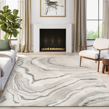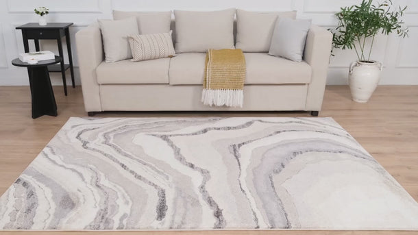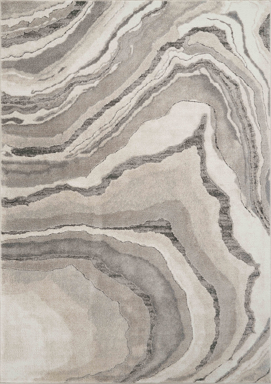Bring striking natural beauty into your home with this rug, inspired by the flowing lines and organic layers of natural stone. This abstract design features fluid waves of grey, beige, and cream tones, creating a dramatic yet calming visual effect. Perfect for modern, contemporary, or transitional spaces, this rug offers an artistic foundation that draws the eye without overpowering the room. Crafted for comfort and durability, it’s as practical as it is stylish—ideal for living areas, bedrooms, or creative workspaces.