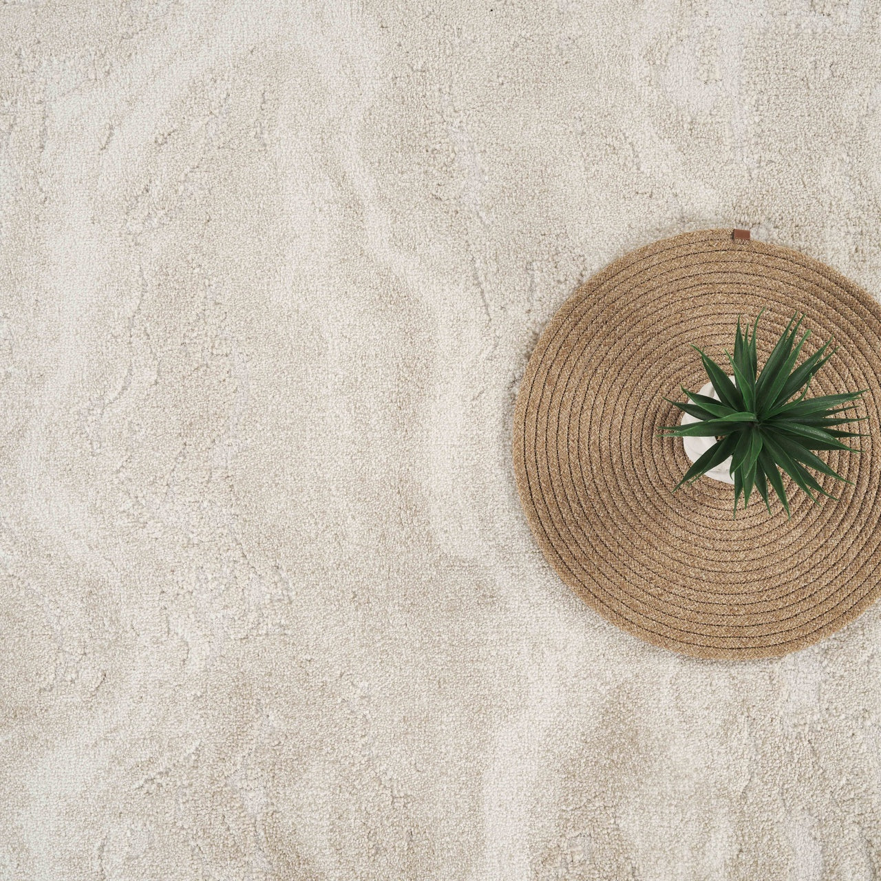 Softly flowing lines and tonal shades come together in this elegant abstract design inspired by natural stone. The cream and beige palette creates a soothing, organic look that adds warmth and sophistication to any room. With its textured surface and contemporary pattern, this rug brings subtle movement and timeless style to modern interiors.