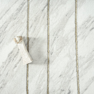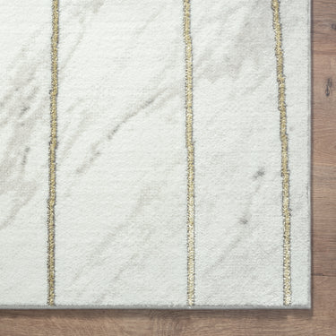 Like ancient Roman baths, this marble rug exudes elegance, grace, and luxury. The perfect upgrade for your interior space, this contemporary area rug offers more than meets the eye. The marble background pattern might seem simple on its own, but it's lined with gold geometric stripes. The easy-care, durable fabric makes this modern work of art a fast favorite for your existing interior design style. Welcome a new, unlimited world of grace, style, and design with this marbled area rug.
