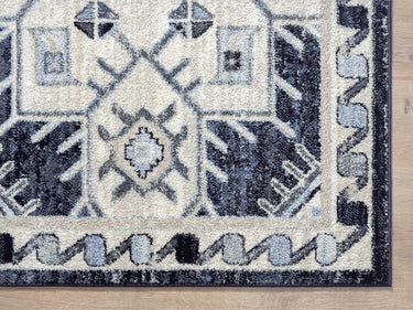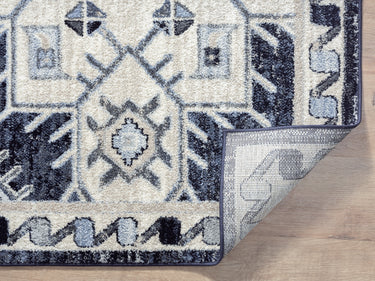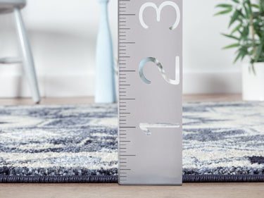 Geometric designs can be just as energetic and eye-catching as other contemporary works of art. Though easy on the eyes, this Cruz area rug is full of life below the surface. The simple ivory and navy color scheme has additional accent colors, like grey and light blue. It's a multicolor addition to any high-traffic area of your home. The simple triangular and square patterns create a sense of balance and unity, blending old world charm with new world modernity. Perfect for any space that's ready for an upgrade, this unique rug design is for you.