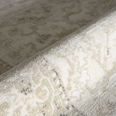 Dress your space with this area rug featuring an intricate ivory medallion surrounded by a delicate botanical border. Woven in durable, fade-resistant fibers, this medallion rug withstands wear and fading. Ideal for formal living rooms or dining areas, it delivers timeless elegance and simple maintenance.