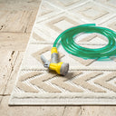 Fans of geometric patterns will love the clean design of this modern rug. The center focus is a symmetric array of diamonds, which has a calming effect on the mind. A border made up of more diamonds and rows of arrows add even more interest and overall balance. Built to last outdoors or indoors, this rug is sure to complete any space.