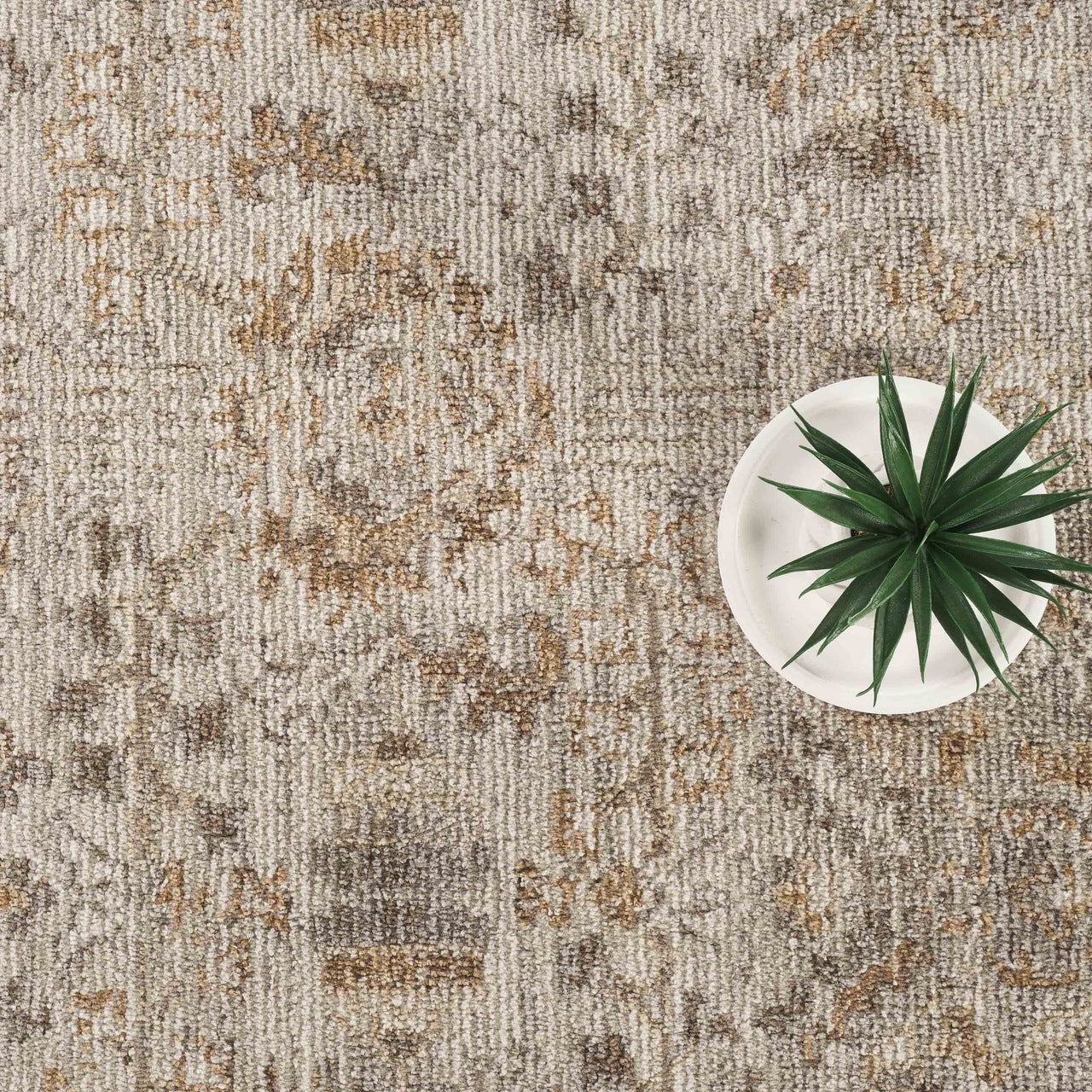 Subtle and sophisticated, this area rug blends vintage charm with modern sensibility. The intricate pattern features soft cream, taupe, and muted green accents, creating a beautifully faded look that feels effortlessly elegant. Designed for everyday comfort and timeless appeal, it’s an ideal choice for living rooms, bedrooms, or home offices seeking a touch of quiet refinement.