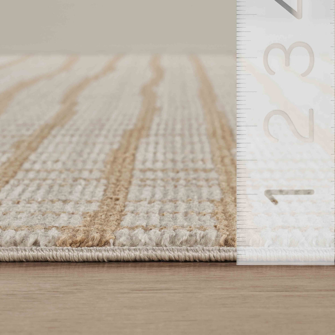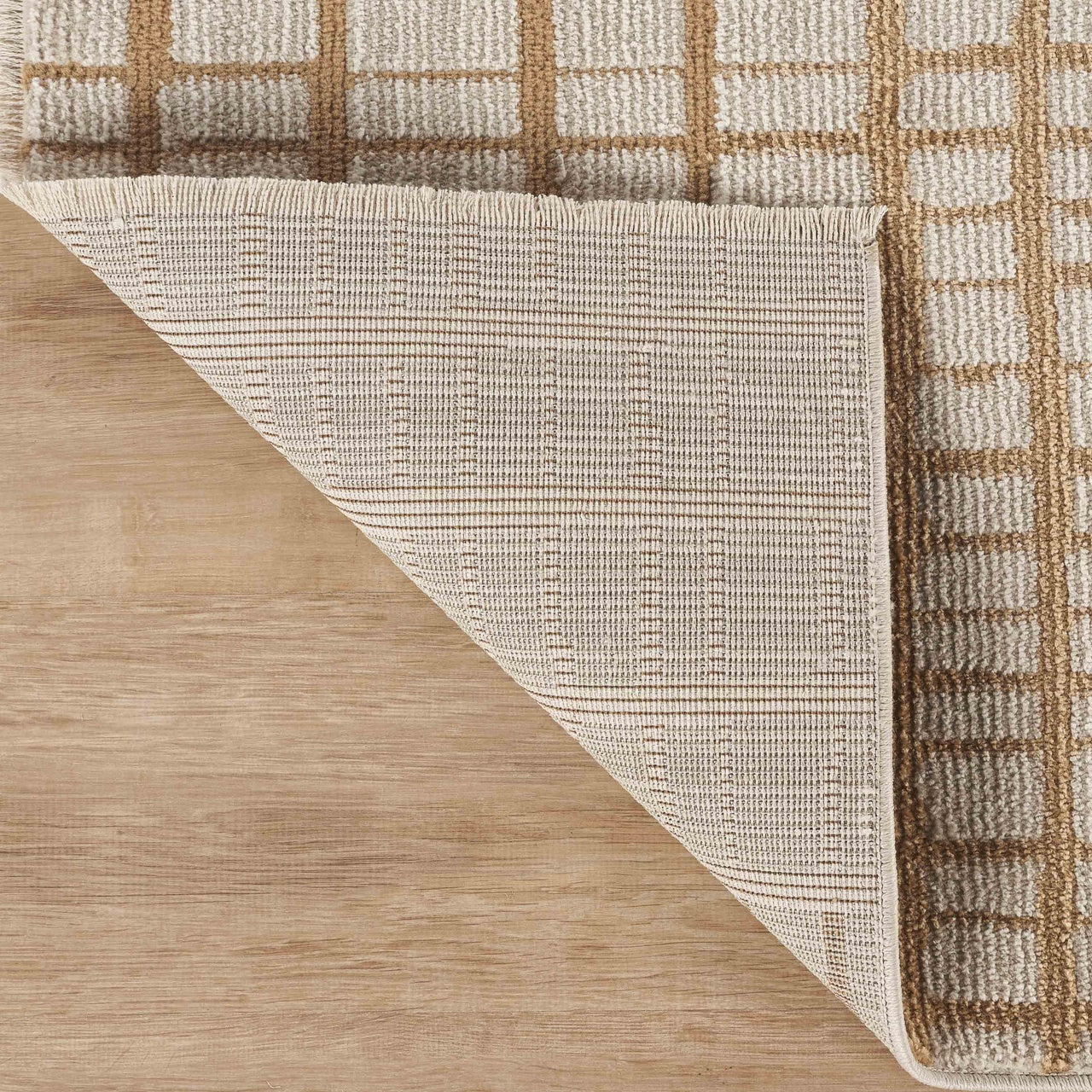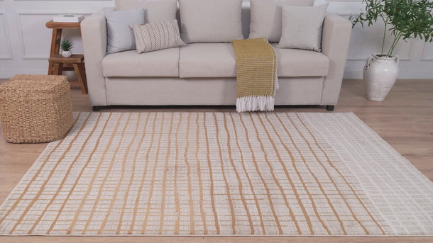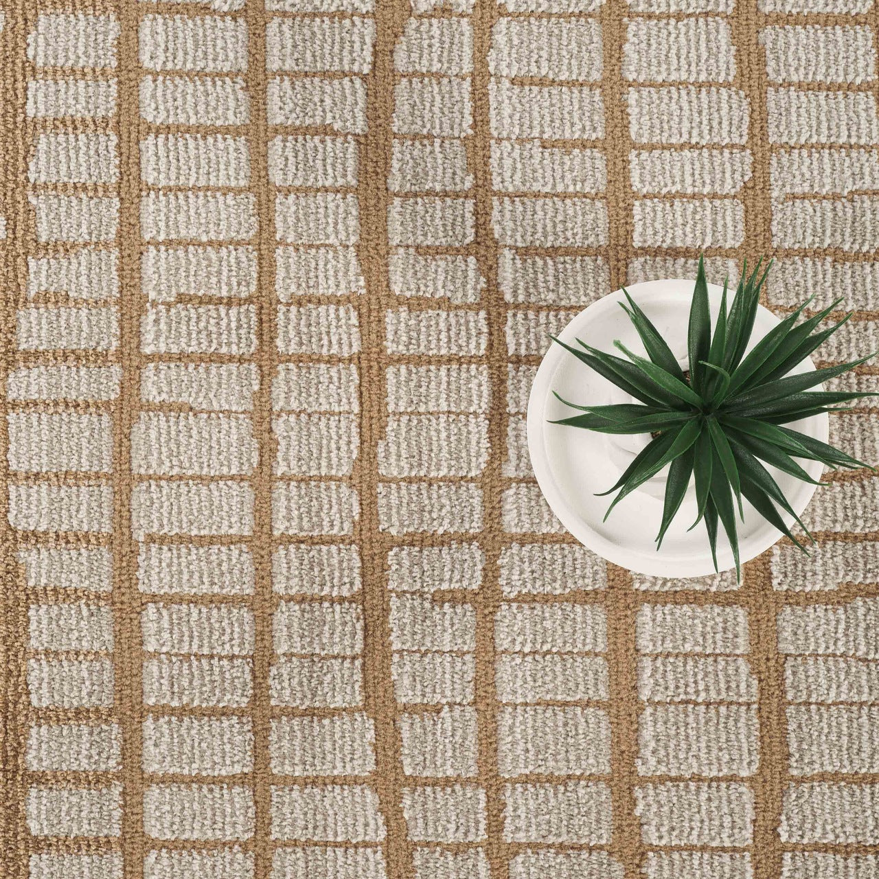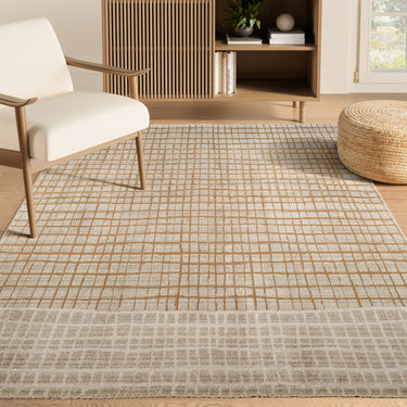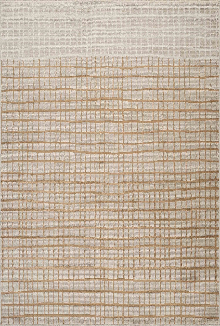 Bold yet balanced, this modern area rug features a freeform grid design that shifts from soft beige to rich camel tones. The subtle gradient and organic lines create a sense of movement and texture, bringing a contemporary edge to your space. Perfect for anchoring living rooms, offices, or bedrooms with a touch of modern artistry and warmth.