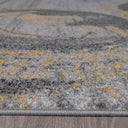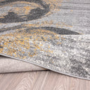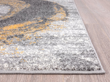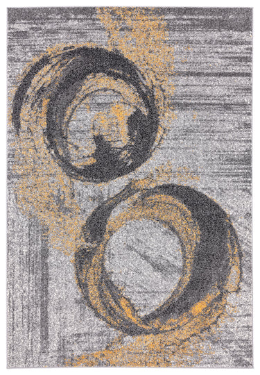 This modern rug redefines what it means to be contemporary. The background includes stark lines criss-crossing with streaks of all shades of white, black, and grey. These intertwined lines create a lively background for two yellow and black swirls of color. They both seems to have a life of its own, splattered against the criss-crossing background like the afterthought of a bold artist. The subtle shades of this contemporary area rug makes it an easy fit for any room of your home, while the bold design draws life into your interior style.