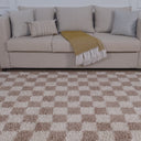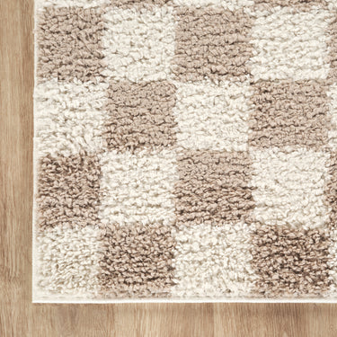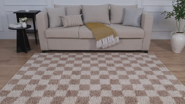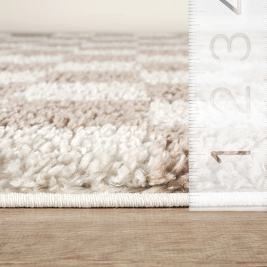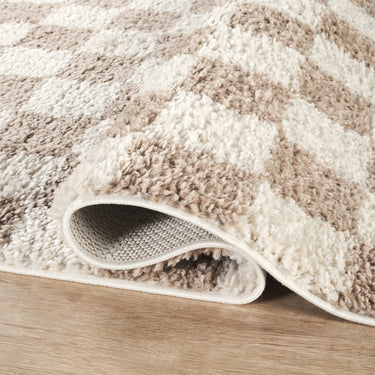 Soft, stylish, and playfully modern, this shag area rug features a classic checkered pattern in warm beige and ivory tones. The plush, high-pile texture offers cozy comfort underfoot, making it an inviting addition to bedrooms, nurseries, or casual living spaces. With its bold pattern and touchable softness, this rug effortlessly blends comfort with contemporary design.