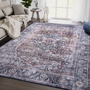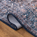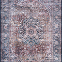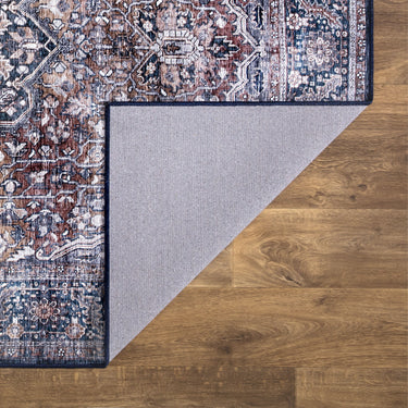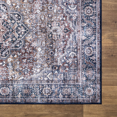 Decorate your floor with this prestigious looking area rug with a bold character. Its sublime dark features in dark blue and terracotta are sure to help create a contrast in any space with lighter furniture. The rug features an exotic oriental design with a soft central medallion surrounded by intricate details in various earth toned colors. This rug is designed to stay comfortable as per modern demands and its low maintenance allows for a longer-lasting rug.