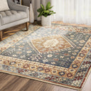 Infused with shades of golden yellow , rust red, and grey blue, this Southwest-inspired rug combines traditional floral patterns with geometric shapes to create a masterpiece of color. The patterns are bordered in rectangles of different colors, creating a multi-dimensional work of art. Add life to your interior design with the one-of-a-kind, stylish Mesa Southwest Geometric Rug. This timeless design looks like it’s a relic from antique Mesa homes of the Southwestern plains and deserts. The easy-care polypropylene is resistant to shedding, yet feels soft and luxurious under your feet. Welcome classic Southwestern style to any room of your home with this area rug.