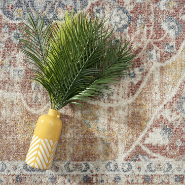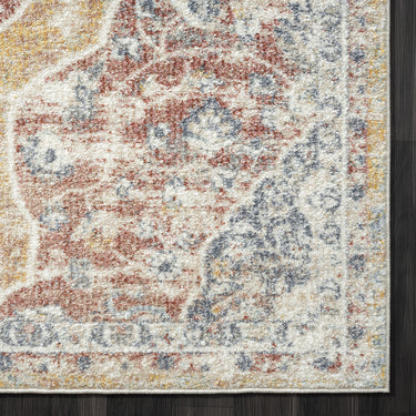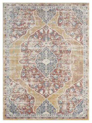 For a traditional favorite, choose this area rug for your space. Though simple, this rug proves that more remains to be discovered within the details. The beige background color and border might be simple, but it perfectly balances the splash of warm color placed throughout. The warm blue and burnt orange offer dimension within the floral and medallion design, but they won’t overpower your existing design aesthetic. Welcome warm, sophisticated charm into your home with this easy-care rug.
