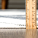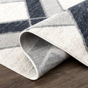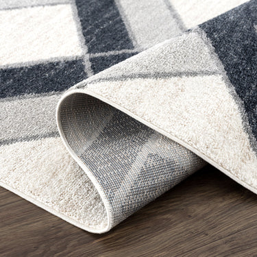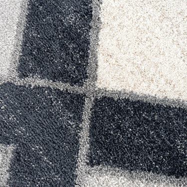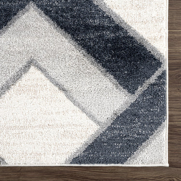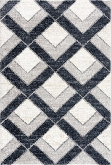 Sophisticated overlapping large charcoal grey arrows on a cream background create an elegant rug for any living space. Pair this monochromatic rug with mid century furniture pieces to create an inviting room with a side of glam.