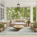 Designed for both style and durability, this green striped rug features a subtle linear pattern in refreshing green hues. Its versatile design adds texture and a natural touch to patios, decks, and outdoor seating areas. Made from weather-resistant materials, this rug stands up to sun exposure, moisture, and heavy foot traffic while maintaining its vibrant appeal. Perfect for creating a cozy and inviting outdoor space, it offers a balance of practicality and timeless style.