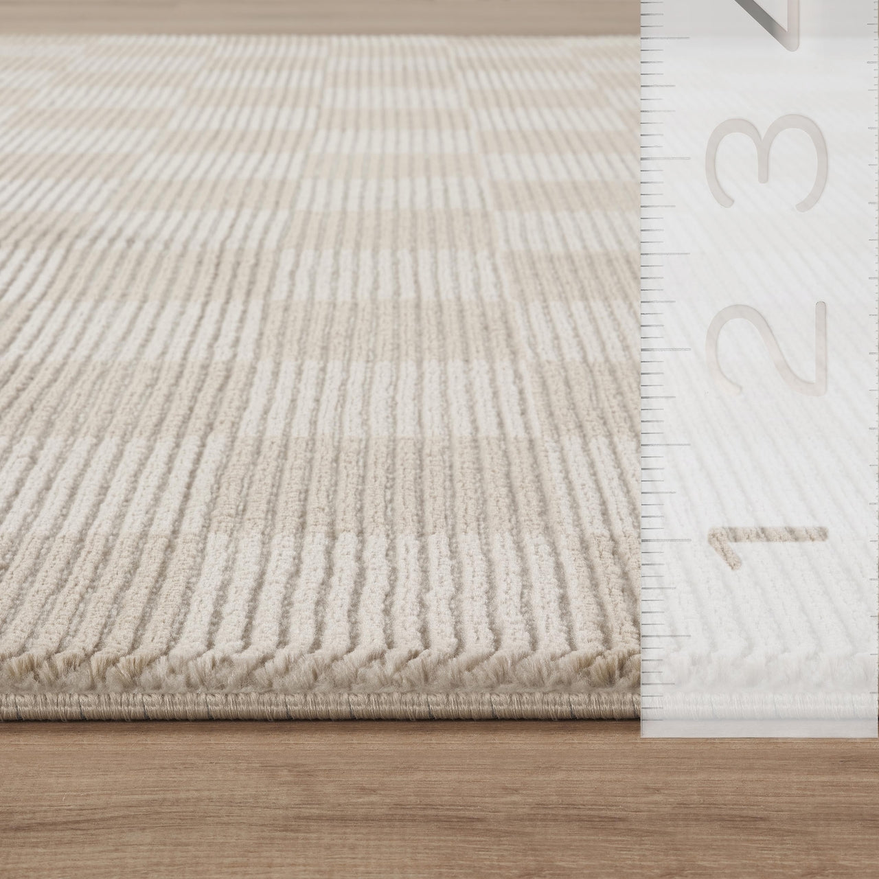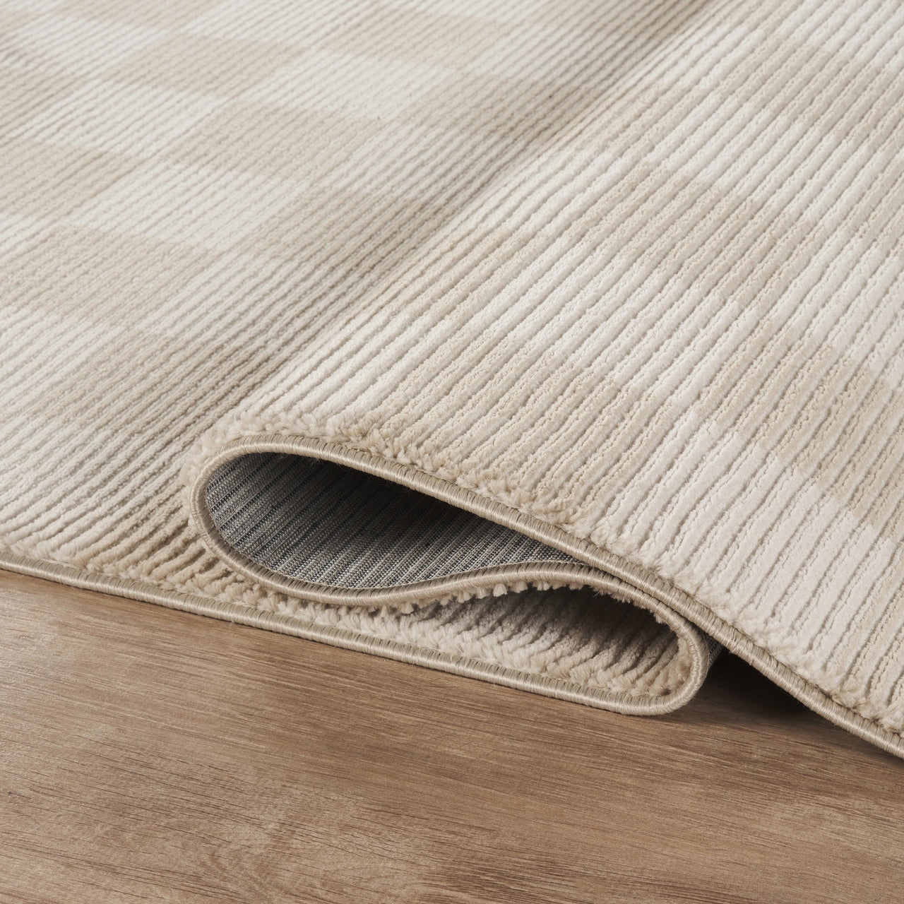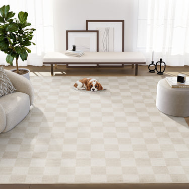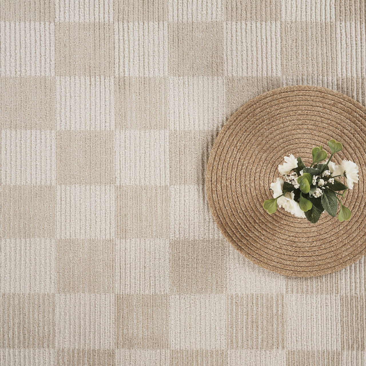 A modern take on a timeless pattern, this rug features a soft checkered design in soothing cream tones for a look that’s both playful and refined. The subtle texture adds dimension without overwhelming the space, creating the perfect balance of simplicity and style. Crafted from plush, durable fibers and fully machine washable, it’s made to bring effortless elegance and everyday ease to your home.