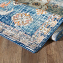 The Porto traditional medallion area rug hints at formal Persian designs with its classic symbolism. Featuring a geometric ivory medallion at the center, bordered by a thin line of burnt orange, this is a stunning work of art in its own right. Around the central medallion rests several small motifs, a reminder of a blooming garden or floral arrangement. The strong shades of navy and royal blue are a bold area rug to add to any interior style. In the Persian rug making tradition, blue represents solitude and comfort, while orange is a symbol of wealth. Why not bring a classic piece of this symbolism and tradition into your own home?