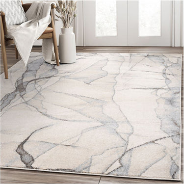 Revitalize your space with this abstract rug creating an image resembling a curtain of white sand. The design portrays superimposed transparent layers of thin fabric creating a calm and serene piece area rug. Bring peace and tranquility to your space with this area rug.