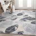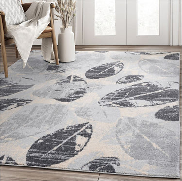 Bring the outdoors indoor with this rug inspired by superimposed leaves. The tone on tone of the various greys creates a perspective effect of leaves on top of each other. The added etched effect all over the rug allows for the rug to be paired with various decor styles.