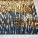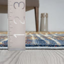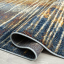 For a bold style that incorporates all of the unexpected colors of the American southwest, look no further than this area rug. The striking deep blues paired with the warm tones of the yellow and burnt amber create a sunset effect, like the sun preparing for rest after a long day. The well-loved distressing and stripe pattern adds excitement and texture, creating an energy with this work of art that is brimming with potential. To bring greater life into your space, invite this on-trend, easy-care rug, perfect for high-traffic areas.