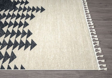 The Tulum Contemporary Geometric Area Rug proves that there is such a thing as timeless design. Though this feels like a mid-century work of art found on the walls of your favorite gallery, this contemporary rug is also effortlessly on-trend. The cream and charcoal colors are of-the-moment, stepping off the pages of the latest design guides. The geometric arrow pattern resembles the strongest of mountaintops, giving a hint of nature-inspired charm to this easy-care, durable rug.