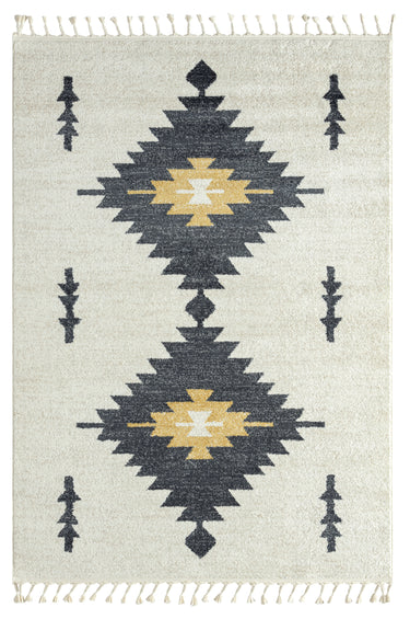 Like the sweeping deserts of the American Southwest, the Tulum Contemporary Southwest Area Rug is a study in calm, warm design. The cream background is effortlessly neutral, seamlessly blending with any existing style aesthetic in your space. Meanwhile, the Southwest-inspired pattern resembles the symbolism of local tribes and communities. The charcoal and gold tones of the geometric shapes are like the silhouette of the setting sun against the trees, impossible to look away from. Paired with the easy-care durability of this rug, this is truly a work of art.