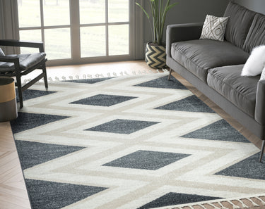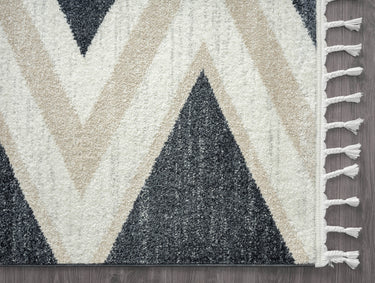 The Tulum Contemporary ZigZag Area Rug is a winding road that proves the journey is always more important than the destination. Seamlessly balanced and elegant, the zigzag design draws the eye from all corners of your home. Paired with the charcoal and cream color scheme, there is both a warmth and coolness to the color selection, making this an easy fit for any existing space. This easy care rug is as durable as it is beautiful, and it’s guaranteed to make a statement no matter your aesthetic of choice.