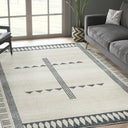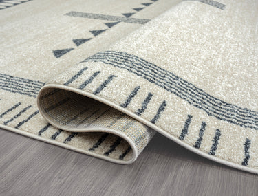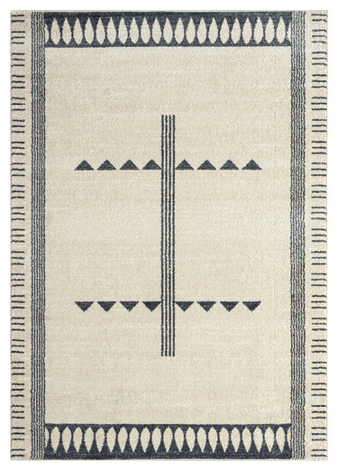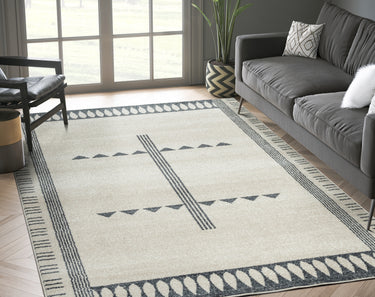 The Tulum Contemporary Tribal Print Area Rug reflects the stunning culture, tradition, and history of the American Southwest. Inspired by the symbolism of local tribes, this neutral-colored area rug represents the protection and comfort of home. The cream background resembles the warm landscape of the desert, while the charcoal geometric shapes are a call back to a classic art tradition. Though simple, don’t underestimate the style, charm, and elegance of this easy-care, durable rug.