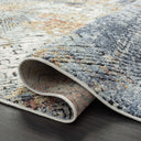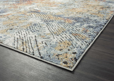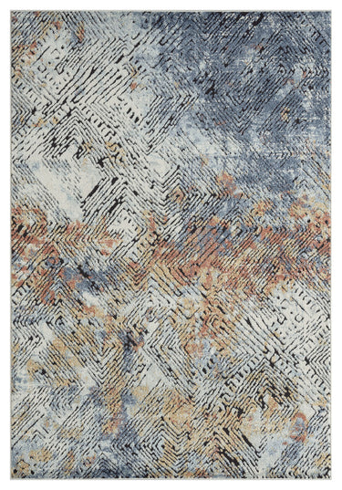 This rug design features a linear etched design in various directions creating an appealing abstract design. Elevate your space with the style and multicolor hues of this area rug. Bring in various decor elements with the greige, blue, red, orange rust found in this rug. The texture of the weave creates a soft rug to adorn your living room, bedroom, dining room or any other space.