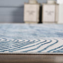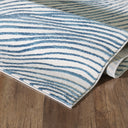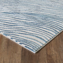 The Vista contemporary geometric area rug features criss-crossing parallel lines across the entire length of the warm blue backdrop. The neutral ivory color of the parallel lines is reminiscent of a warm day at the beach, bringing this relaxation and charm with it. Like the famous art-deco art style of decades past, this is the perfect addition to any fashion-forward home. The elegant geometric design is perfect for any modern space, whether you use this area rug in your living room, bedroom, or office. The easy-care polypropylene material is ideal even for high-traffic areas of your home, lending a casual elegance.