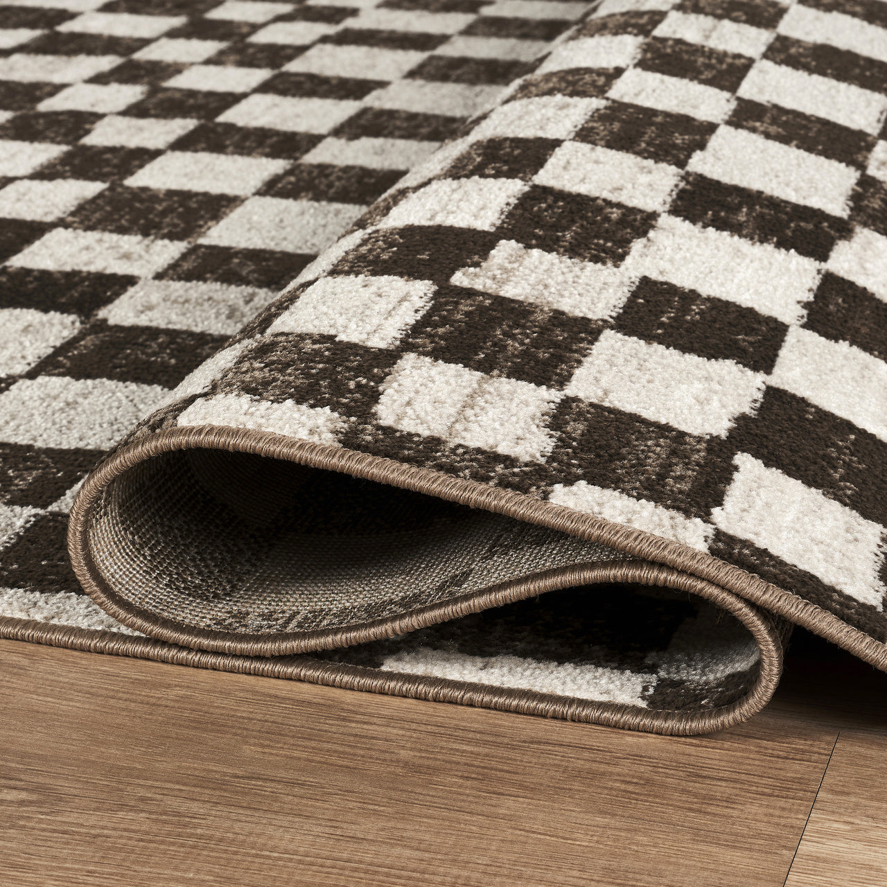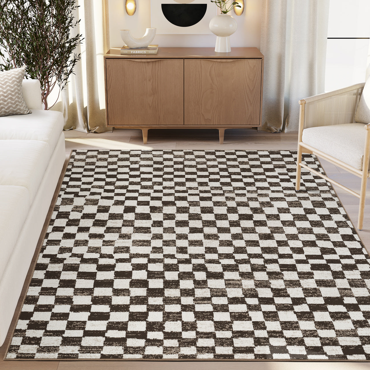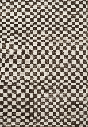 A modern take on a classic check. The Vivienne area rug pairs warm brown and soft ivory in a textured, painterly grid that feels graphic yet relaxed. Subtle tonal variation adds depth without overwhelming the space, making it an easy anchor for living rooms, bedrooms, dining areas, or workspaces. Designed for real life, this rug is machine washable, offering effortless upkeep without compromising style. Durable, low-maintenance, and refined.