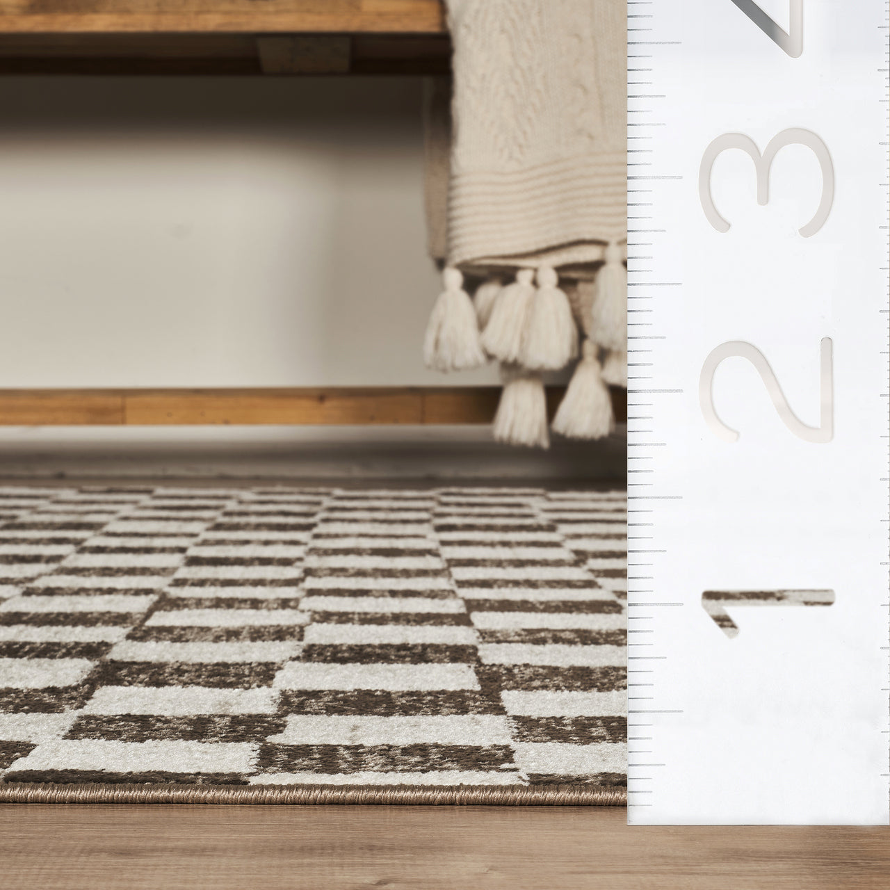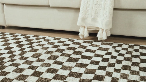 Vivienne Washable Checkered Brown Rug