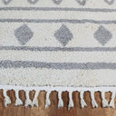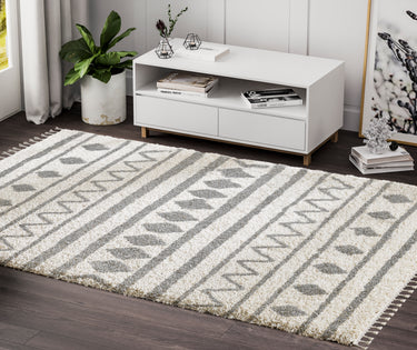 Experience the blend of Moroccan style with mid-century modern flair with this Willow bohemian geometric area rug. When you think of mid-century decor, you likely picture plush, shag carpets and understated elegance. With this geometric pattern inspired by the Moroccan tradition of rug making, you can welcome a bohemian mix of the old and the new. Zig zag grey borders surrounding repeated geometric shapes and cross hatching adds an unexpected texture to this easy-care work of art. Whether you have a classically modern interior or a traditional approach to decor, this rug will fit right in.