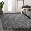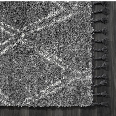 For a touch of classic charm, choose the Willow Contemporary Linear Shag Area Rug. The grey, distressed background of this area rug is an easy addition to any existing interior style. The modern color choice, paired with ivory, is effortlessly on-trend and of-the-moment. An ivory linear pattern criss-crosses across the length of the Willow rug, like an ivy patchwork along a modern wall. Add a touch of pattern, charm, and warmth with this shag rug favorite.